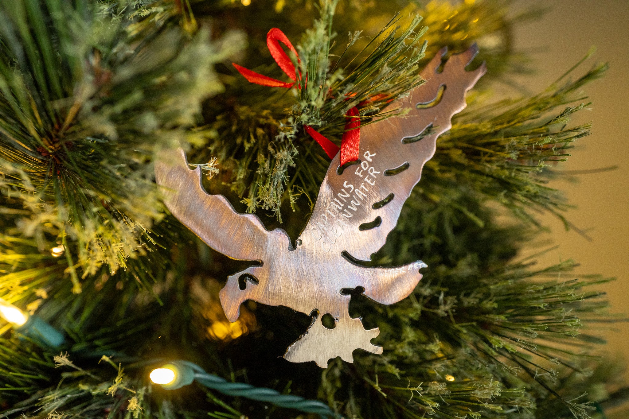 Stainless steel osprey ornament handmade by our friend Ashley Weber, an amazing artist, angler, and advocate from the Mosquito Lagoon area.