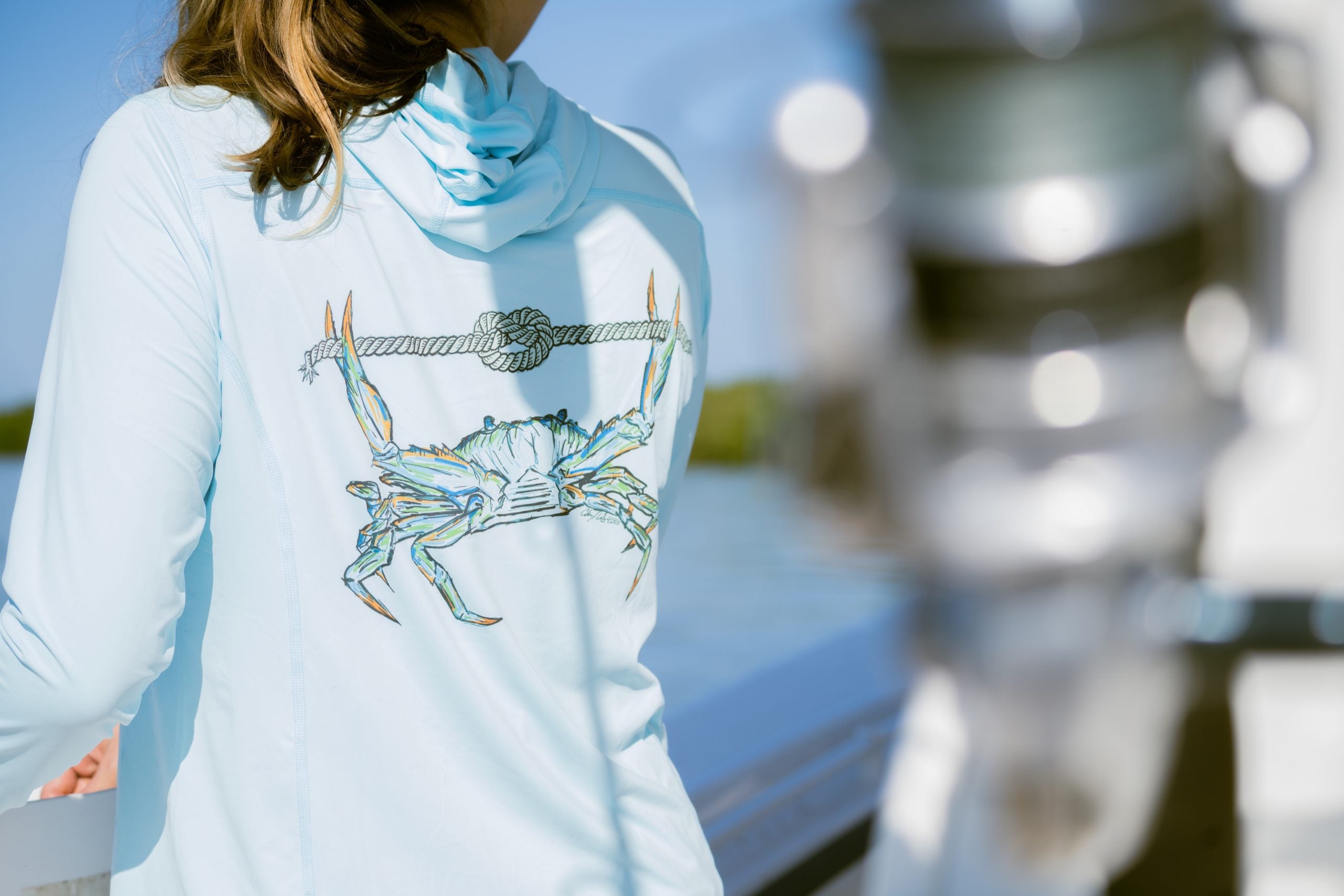 Captains x Orvis Women's Sun Defense Blue Crab LS Hoodie
